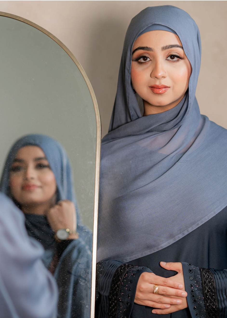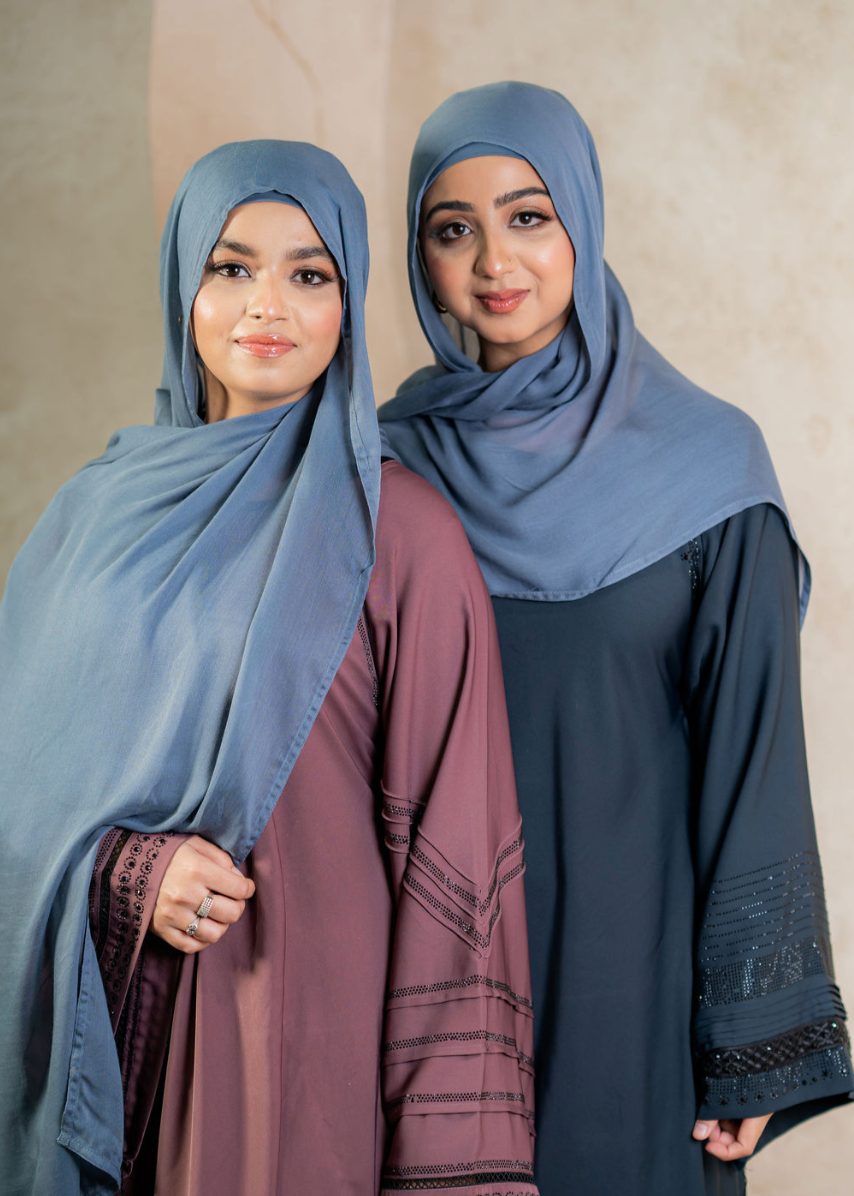 Blue Moon is a dusky slate blue with a silken sheen, it evokes quiet skies and calm waters under moonlight. It’s the kind of hijab that whispers elegance; cool-toned, mysterious, and effortlessly refined. A piece that feels both grounded and ethereal.