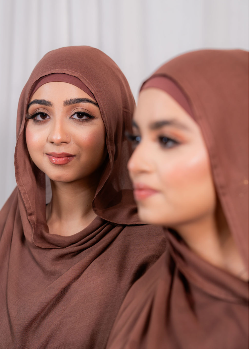 Chocolate is where deep cocoa tones melt into soft mocha hues, creating a hijab that feels like a warm hug, timeless and grounding; the perfect neutral with a little extra depth. It’s the kind of shade that flatters every skin tone and pairs effortlessly with anything.