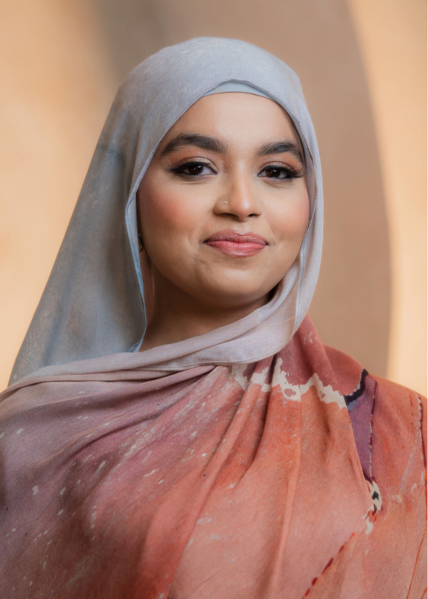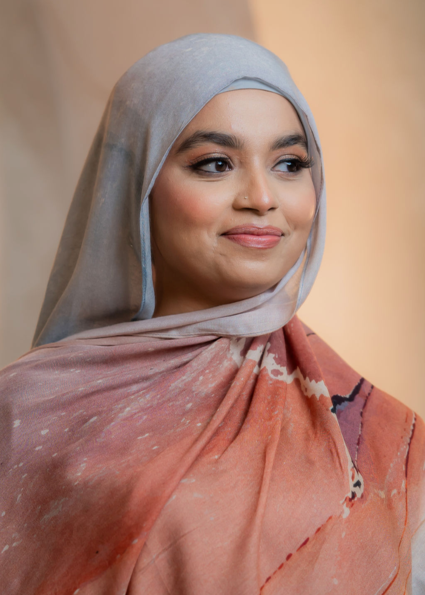 Styled by EDEERA: Let Chromatic Blend shine with a neutral-toned abaya - light beige or grey and finish with a pair of gold hoops.