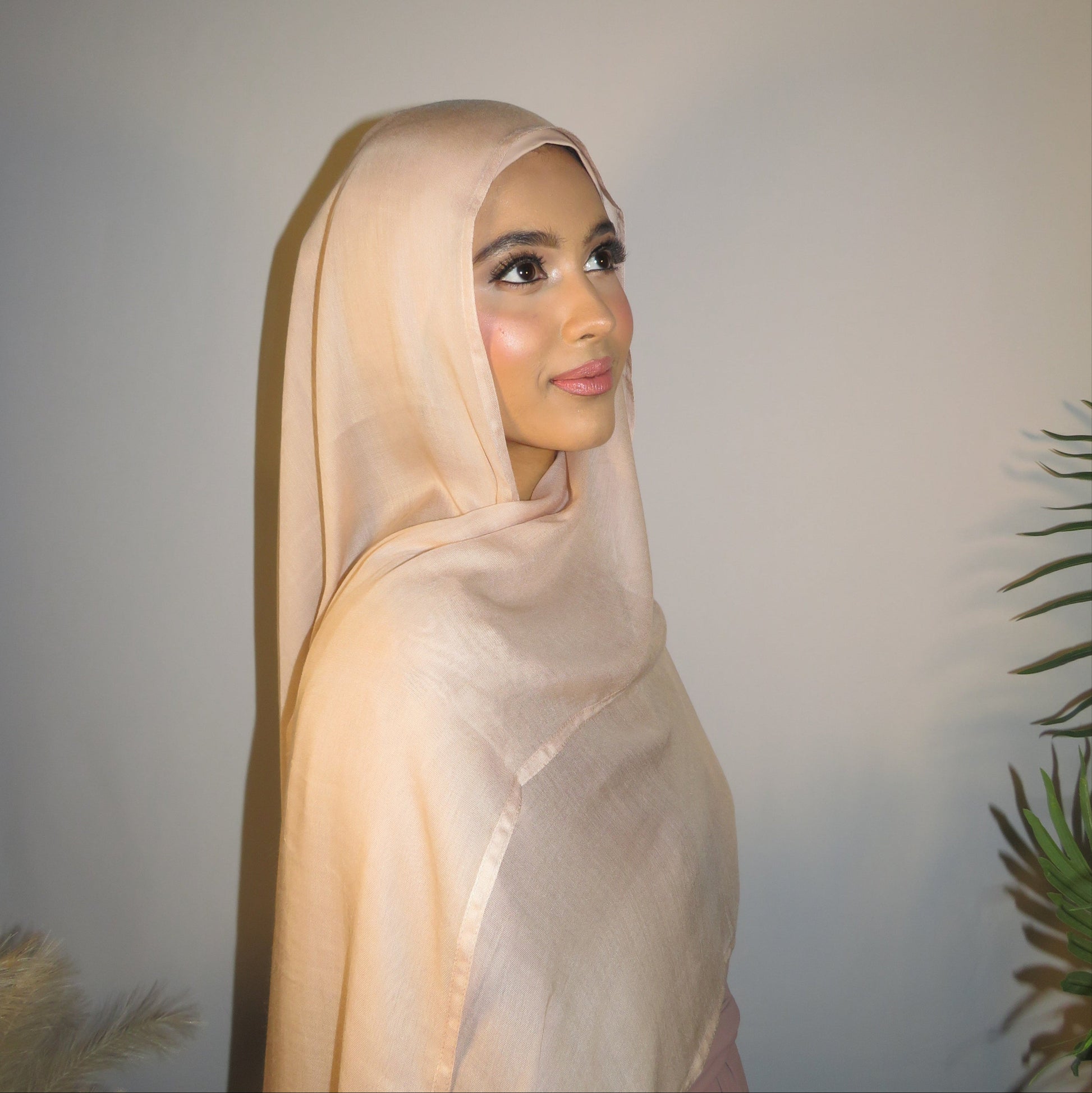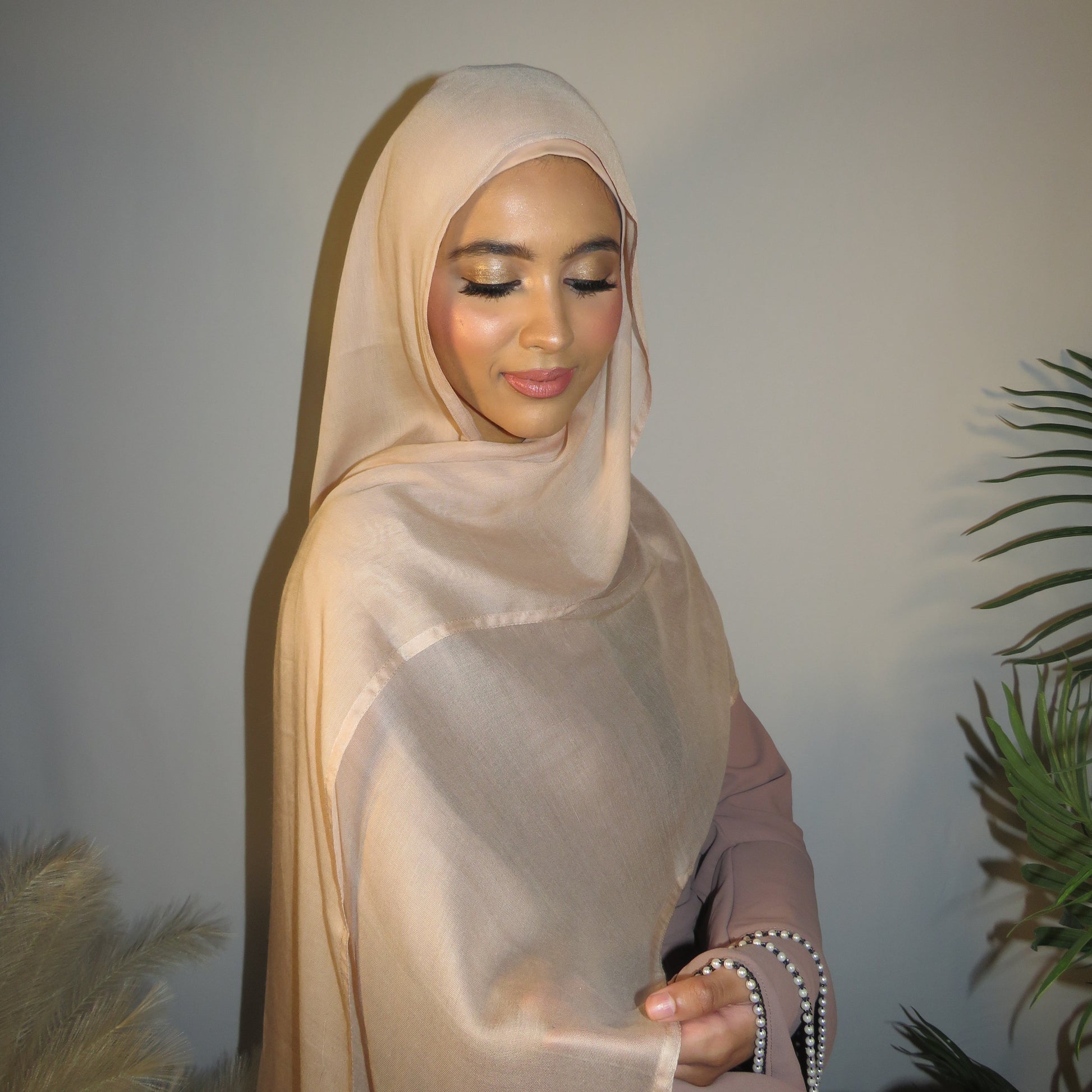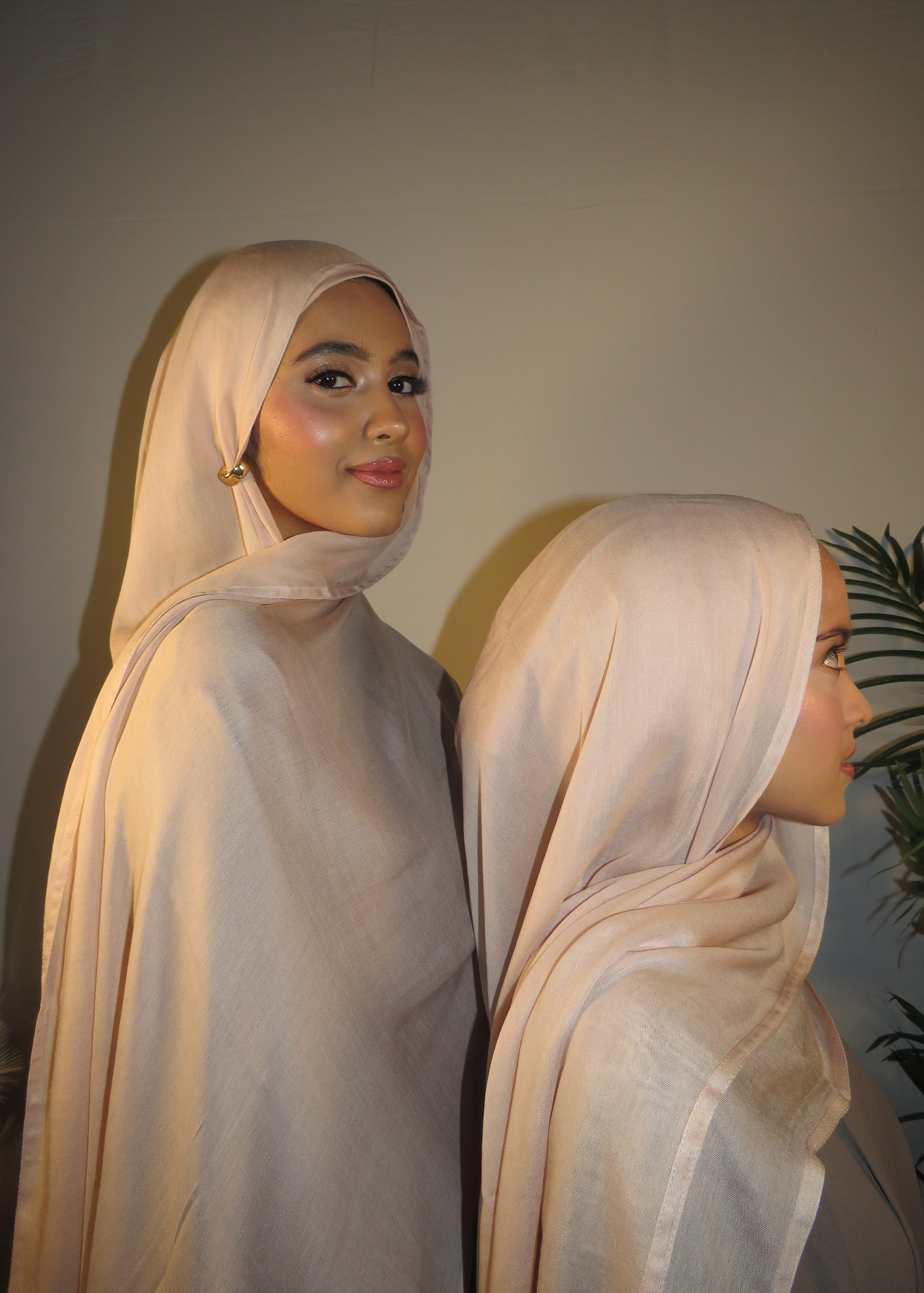 Styled by EDEERA: Wear Dawnlight with an ivory, sage, or soft blush abaya/co-ord set for a graceful, tonal look. Layer with natural textures and gold details for effortless daywear. It’s the kind of hijab that goes with everything; and elevates anything. Only at EDEERA.