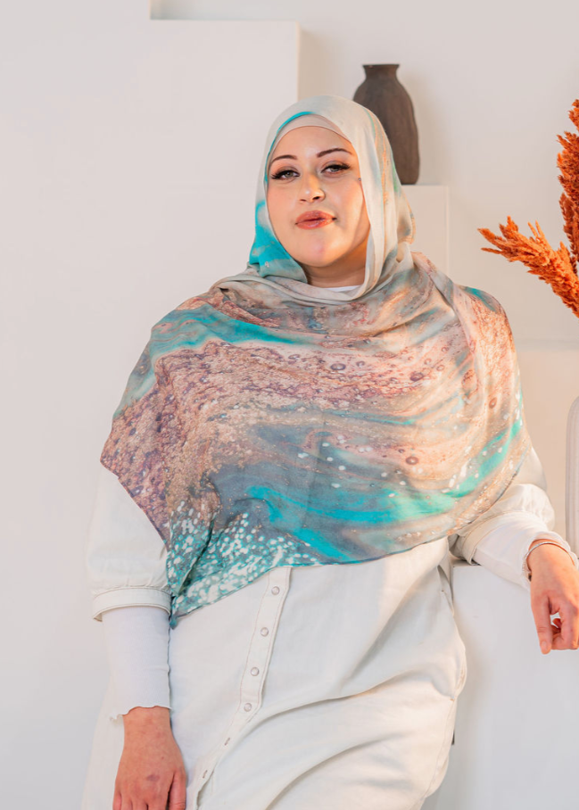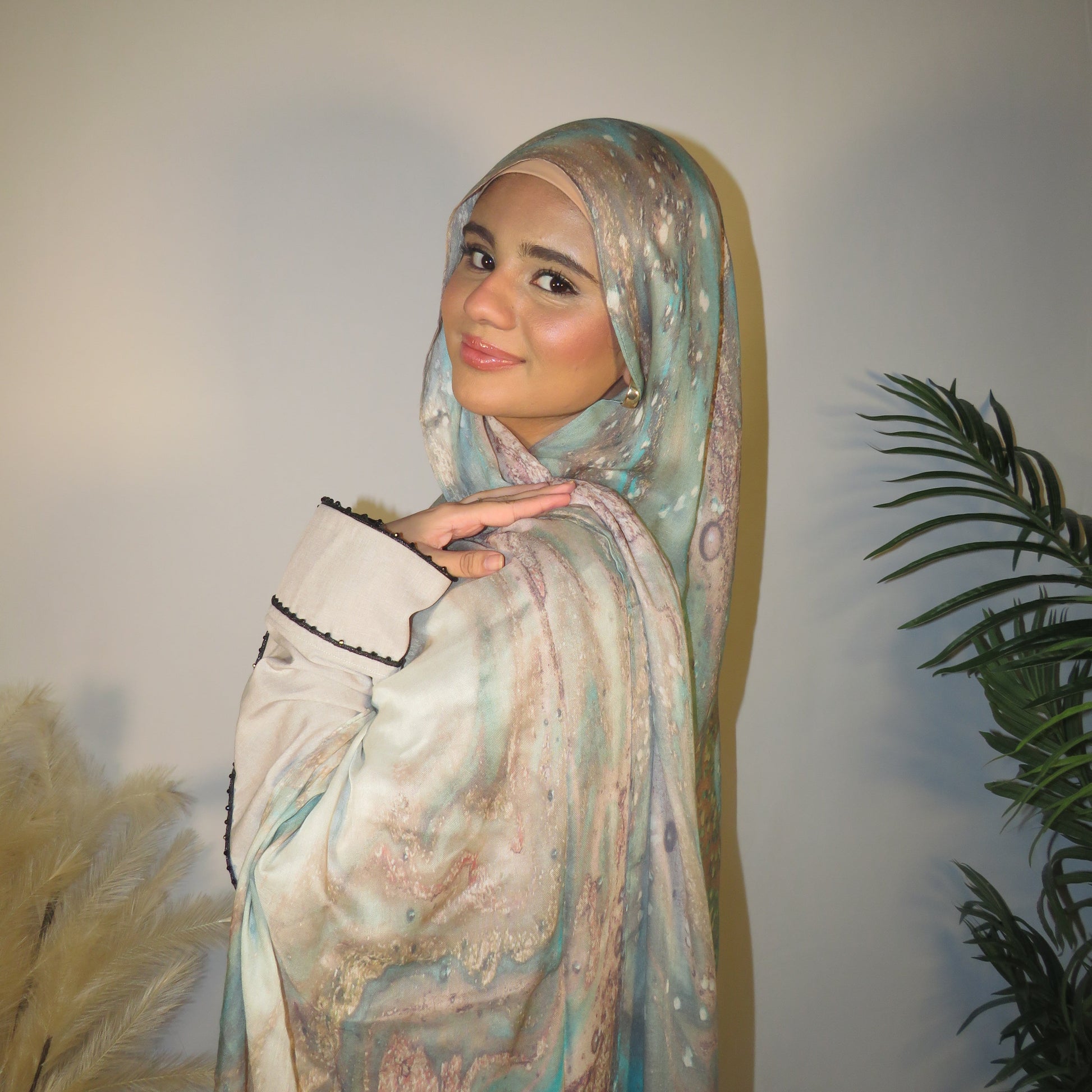 Styled by EDEERA: Pair Earthbound with a flowy, tie-front blouse in white, cream, or blush, white wide-leg pants or a pair of light wash jeans, and gold jewellery. This hijab adds that effortless elegance only nature (and EDEERA) could inspire.